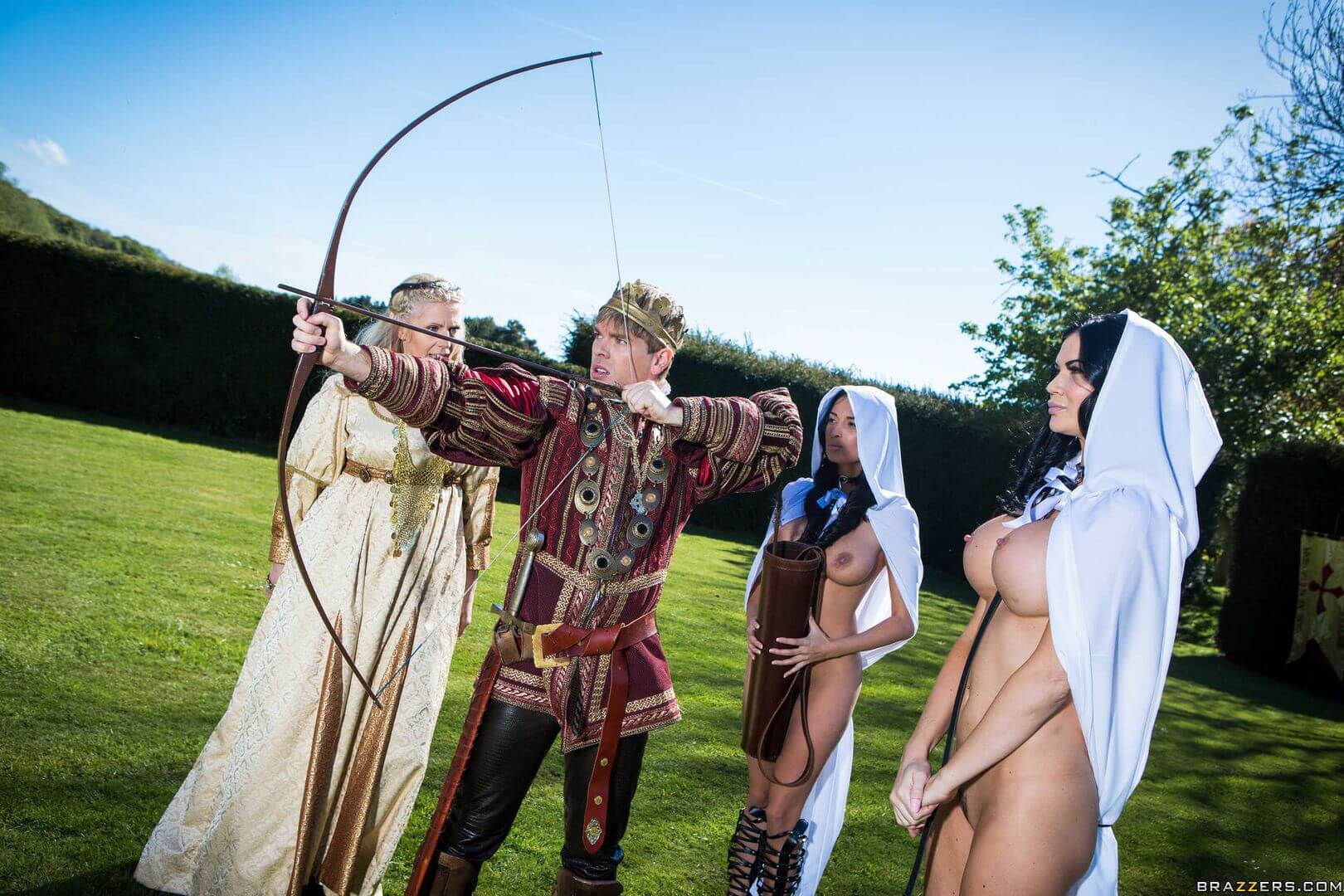 Busty servants Anissa Kate and Jasmine Jae pampers their king